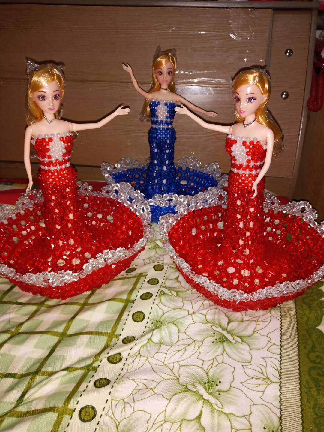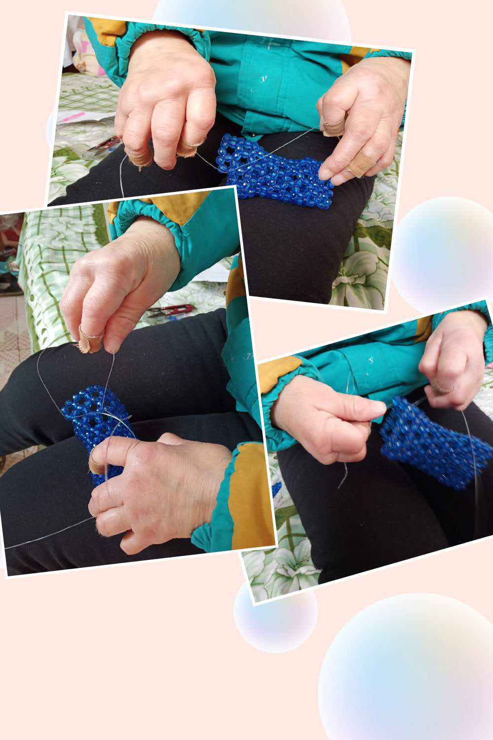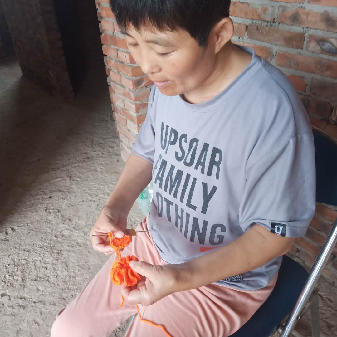 就这样,工作了五年后,木器厂搬了家,工作没有了,生活还要继续。李亚利又尝试做过很多工作。她卖过菜、卖过包子、缝过毛衣,虽然不稳定,也有一定的收入。在十字绣最火的几年里,她又做了几年的十字绣、缝过串珠,几乎没有停歇。之后,在区妇联的帮助下,她进入了一个手工培训班,学做手工艺品、挂件。