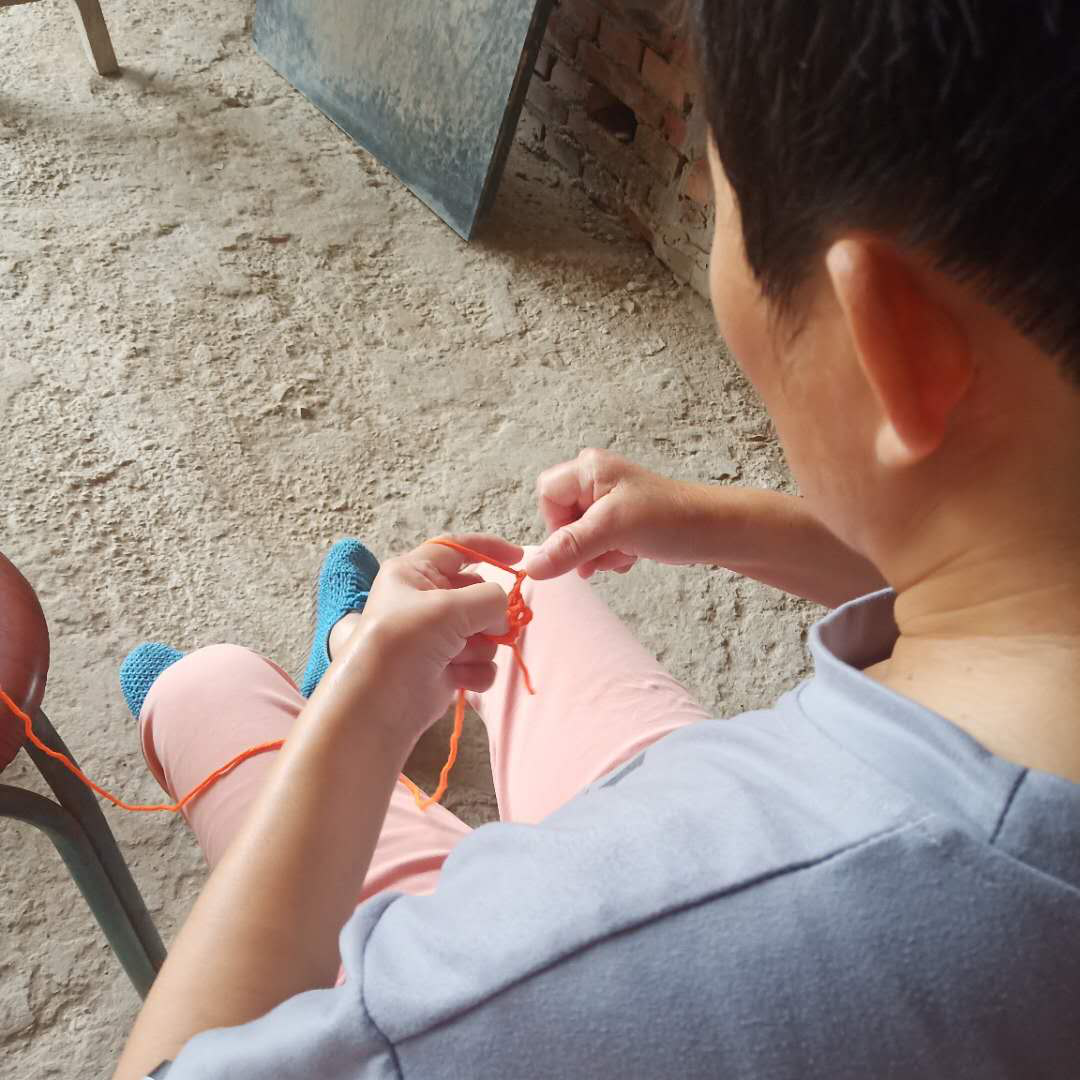 如果仔细看,李亚利的手已经严重变形,与病痛相伴多年,她也已经习惯了无时无刻的疼痛。虽然生活给予她痛击,李亚利却用这双已经变形的双手,编织出了许多绚丽的色彩。