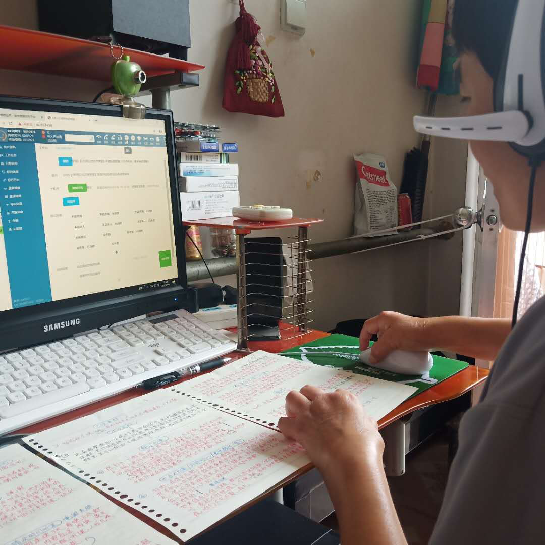 作为宜生无忧的一名电话外呼员,家住北京市平谷区的李亚利已经习惯将执行的任务用笔抄写一遍,并在重点的地方做好标记。李亚利说,虽然现在已经不像最开始那么紧张了,但是只要自己在做任务,就一刻都不敢怠慢, “因为我的手不太灵活,我需要更多的专注力,不然有可能会漏接电话,影响整体交付的质量,话术抄一遍能加深印象,这样在沟通的时候不会出错。”